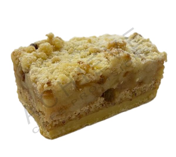 Deliciously moist, perfectly spiced mixture of apple and sultanas captured between a layer of soft crumble and crisp biscuit base.