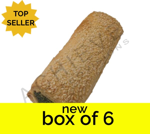 Sometimes the basics are all you need. Spinach roll has flaky pastry wrapped around a spinach, ricotta ad feta filling. Topped with sesame seeds.