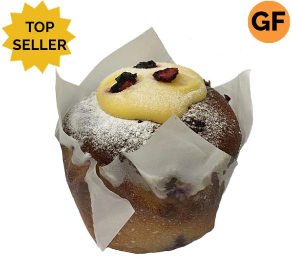 A light fluffy almond meal muffin base mixed with sweet blueberries and topped off with a flavoursome lemon curd and freeze-dried blueberries.