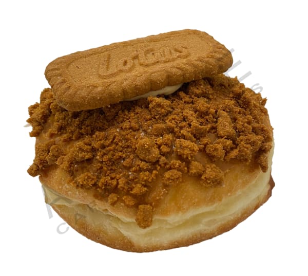 For the Biscoff lovers! Donut filled with a Biscoff butter cream, topped with Biscoff icing, Crumbed Biscoff and a Biscofff Biscuit
