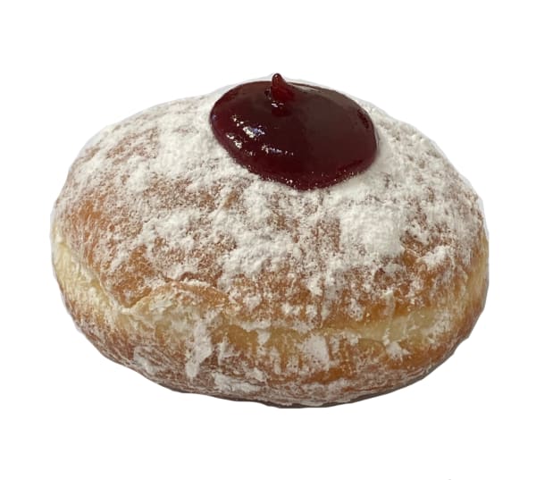 A delicious gourmet donut bomb filled with sweet jam and dusted with icing sugar.