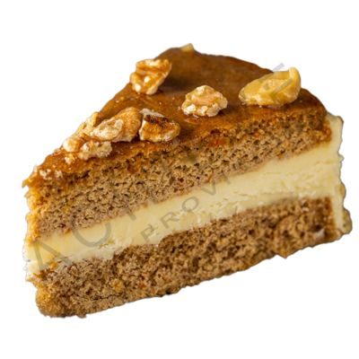 Classic style carrot cake featuring walnuts, pineapple and coconut.
