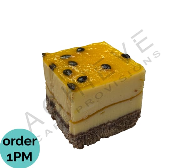 Biscuit crumbs ( wheat Flour, Sugar, Vegetable Oil, Soy Lecithin E322, a-Tocopherol E307), Non Fat Milk Solids, Salt, Raising Agents Ammonium Bicarbonate E503, Sodium Bicarbonate E500, Sodium Pyrophosphate E450), Cocoa powder, Butter , Creamcheese , Corn starch, Lemon juice, Eggs , Cream, Vanilla paste (glucose, fructose, sugar, water, vanilla seeds, carrageenan, plant extracts, modified starch), Mango, Water, Pectin, Citric acid E330, Passionfruit pulp | ||||