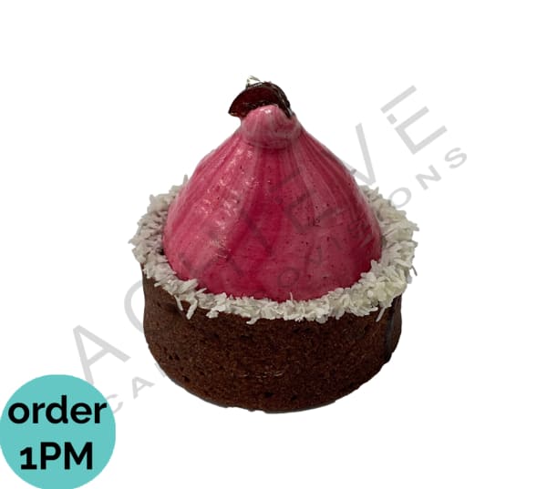 Wheat Flour, Butter , Sugar, Egg , Natural Vanilla Extract, Salt, Coating with Non Dairy Chocolate, Cherries, Modified maize starch E1422, Coconut, Cream , Dark couverture (cocoa mass, sugar, cocoa butter, emulsifier soya lecithin, natural vanilla flavouring), Inverted sugar, Cherries Morello, Albumen, Gelatine, Sugar, Red colour (sodium chloride, Carmoisine E122), Cherries, Coconut, edible silver leaf |