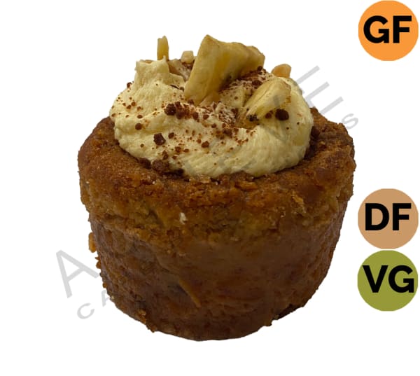 Banana (18%), (Banana, Antioxidant (300,330)), Brown Sugar, Coconut Cream (Coconut Cream 99.9%, Stabilisers (Xanthan Gum, Guar Gum, Carrageenan)), Almonds, Dairy Free Cream Cheese (Water, Coconut Oil, Modified Starch (1420,1450,1414), Sugar, Emulsifier (341,450) Salt, Food Acid (270,330), Acidity Regulator (331), Flavour, Thickener (415), Preservative (202), Colour (150a)), Rice Flour, Egg Replacer (Rice Flour, Potatoe Starch, Tapioca Starch, Cornstarch, Baking Powder, Emulsifier (471), Chia Seed, Flaxseed Flour, Psyllium Husk, Citric Acid), Icing Sugar (Cane Sugar, Maize Starch), Vegetable Table Spread (Contains Vegetable Oil, Water, Salt) Castor Sugar, Soyabean Oil (Contains Soybean Oil), Banana Chips (2%) (COntains Banana 89%), Coconut Oil, Sugar, Honey), Golden Syrup (Cane Sugar, Cocoa Butter, Contains 60% Cocoa Solids), Baking Powder (Mineral Salts (541,500,341), Rice Flour) Bi Carb Soda. | |||||