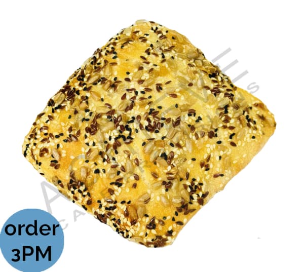 Freshly baked by LUXE Bakery, the square bun features a crisp, chewy crust and light, white textured dough. Garnished with sesame seeds, nigella seeds, linseeds and sunflower seed provides an additional crunch and burst of flavour. Perfect for Paninis but suitable for a wide variety of food service needs. Suitable for Vegans.