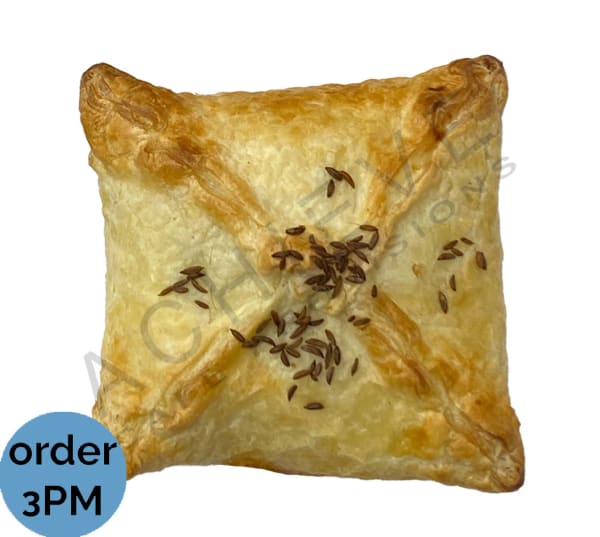 | Pastry: Pastry (Wheat flour, Margarine [animal fat, water, salt, emulsifiers (471, 322 soy), antioxidant (307b soy), Flavour, Colour (160a)], Water, Butter [milk], Preservative [202]), Glaze, Caraway seeds. Filling: chicken, water, coconut cream, green beans, chilli, thickener (1422), green curry paste, coriander paste, onion, salt, basil paste, chicken seasoning, spice, chilli powder. |