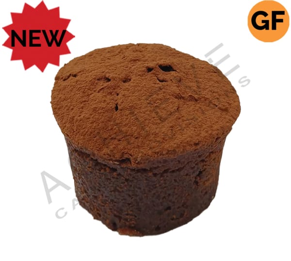 A slow baked individual sized gooey gluten free chocolate torte finished with a dusting of dark