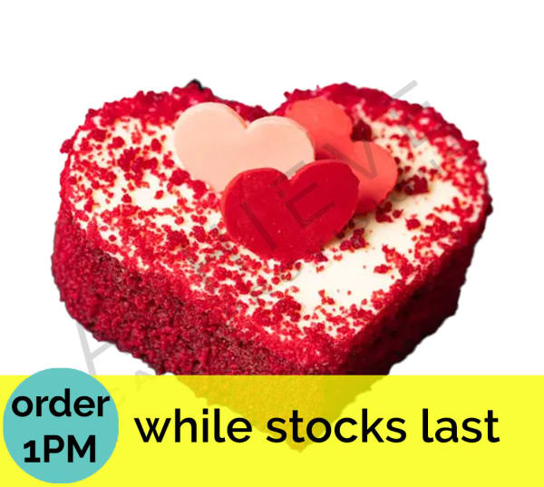 Moist red velvet sponge, creamy cheese icing, and charming chocolate heart garnishes. Perfect for any sweet celebration!