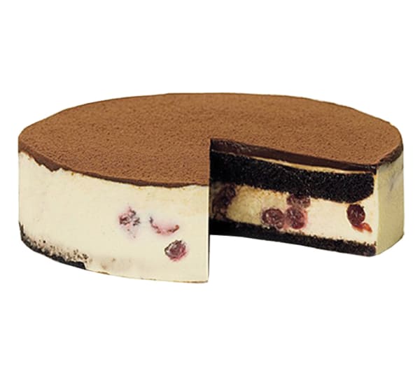 Layers of chocolate sponge soaked in Kirsch-flavoured syrup, filled with a creamy mousse & sour cherries, finished with a layer of dark chocolate ganache.