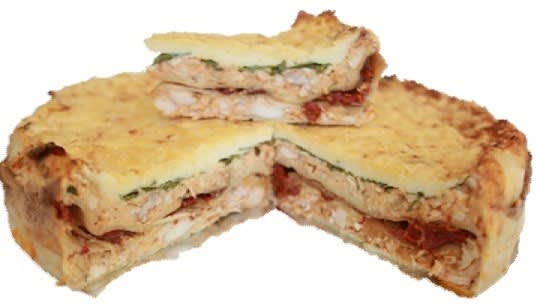 Chicken (34%), Water, Butter (Pasteurised cream (separated cow’s milk), Salt, Water), Plain Flour (Wheat flour), Tasty Shredded Cheese (Pasteurized milk, Salt, Enzyme (Non-animal rennet), Cultures, Anti-caking agent (starch), Preservative (200)), Milk Powder, Lasagne Sheet (4%) (100% Durum wheat semolina), Onion, Canola Oil, Sundried Tomato (1%) (Tomatoes, Sulphur Dioxide), Sesame Seed, Roquette (1%), Paprika, Cajun Spice, Salt and Garlic. |
