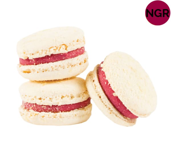 MACARON SHELL: Sugar 53%, Almond meal, egg white, egg white powder RASPBERRY CREAM: raspberry puree 40%, sugar, eggs, corn starch, butter, colour E171 |