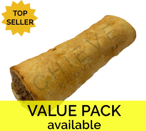 Filling (56%): Water, Mince Beef (33%), Breadcrumbs [Wheat Flour (Thiamine & Folic Acid), Water, Bread Premix (Salt, Wheat Flour, Sugar, 341, 472e, 170, Emulsifier 471, Antioxidants 307, 304, 330, Vegetable oil, Ascorbic Acid, Bakery Enzyme), Instant Yeast], Onion, Sausage Roll Seasoning [Salt, Sugar, Dehydrated Vegetables (Onion, Garlic), Caramel Colour (150c), Herbs, Spices, Corn Flour, Flavour (635), Hydrolysed Vegetable Protein], Ground Black Pepper, Thyme Leaves. Pastry (44%): Wheat Flour, Water, Margarine [Vegetable Oil, Water, Salt, Emulsifier (471, 472c), Antioxidant (304), Natural Flavour], Shortening (Vegetable oil), Glaze [Milk Solids (Skim Milk Powder), Acidity Regulators (500, 451), Maltodextrin, Colour (160b)]. |