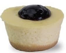 Individual slow baked New York cheesecake, on a biscuit crumb base covered in unique delicious blueberry puree. Size 7cm
