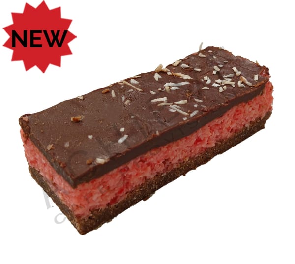 | condensed milk {milk, sugar, lactose}, coconut {coconut, preservative (223, 220)} (sulphites), plain wheat flour {vitamins [thiamine, folate]}, margarine {vegetable oils and fats, water, anhydrous milk fat, salt, emulsifier (435,322 -soy, 471, 475, 492), preservative (202), permitted flavouring (milk), antioxidant (320), acidity regulator (330), natural colour (100, 160a)}, dark compound chocolate{sugar, palm oil(26%), dark cocoa powder(20%), soy lecithin), glace cherry (6%) {cherries, sucrose, citric acid (330), potassium sorbate (202), cochineal carmine (120), sulphur dioxide (220)}, raw sugar, canola oil, sponge mix {wheat flour, sugar, emulsifiers (472b, 477, 475, 471), mineral salts (500,541), milk solids non-fat, iodised salt, whey powder (milk), vegetable gum (415), colour (102)}, cocoa powder, whole egg, water, coconut (sulphites) (0.19%), raspberry flavour, red colour {colour (124)} | ||||
