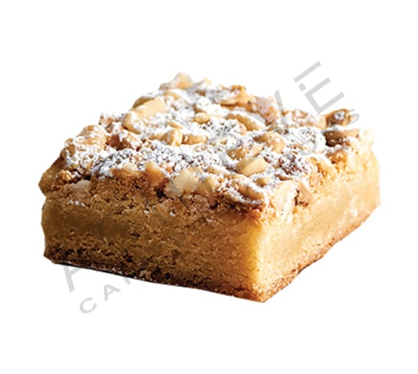 Sweet vanilla slice with white chocolate and macadamia flavour. Slightly firmer than a classic choc brownie.