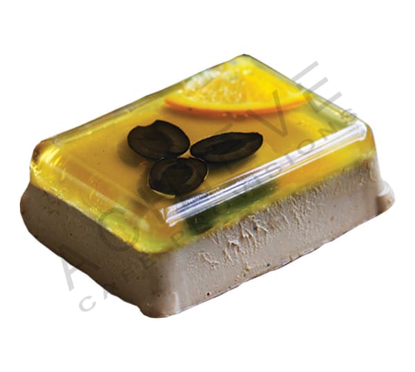 Butter (Pasteurised cream (separated cow’s milk), Salt, Water), Chicken Liver, Onion, Water, Duck Liver (5%), Brandy, Orange (3%), Garlic, Canola Oil, Gelatine, Black Olive, Vinegar, Orange Essential Oil (1%), Sugar, Salt and Preservative 223 (Contains Sulphite). |
